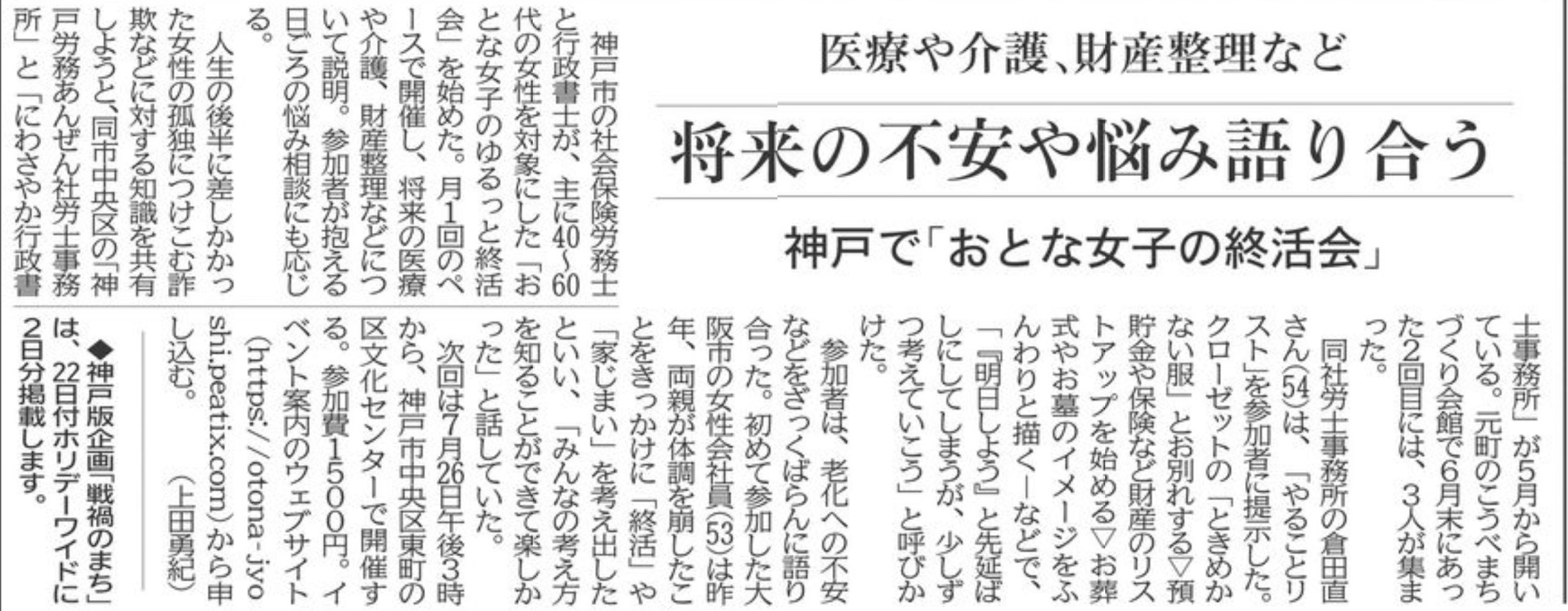 共同で開催している「おとな女子のゆるっと終活会」が紹介されました。