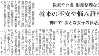 news 2025.7.21 「おとな女子のゆるっと終活会」が新聞に掲載されました 出典「2025年7月21日 神戸新聞朝刊」2025年7月21日付神戸新聞朝刊にて、当事務所が神戸労務あんぜん社労士事務所と共同で開催している「おとな女子のゆるっと終活会」が紹介されました。主に40~60代の女性を対象に将来の不安や悩みをゆる... 2025.07.22 news